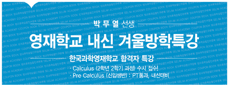 Read More세림학원만의 노하우가 담긴 2018년 겨울방학 특강입니다. 우리 학생들이 겨울방학을 알차게 보낼 수 있게 준비 하였습니다. 살펴보시고 많은 관심 부탁 드립니다.